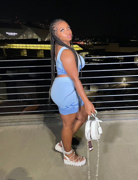 "Hot Girl Summer" Set - Blue Flame Two-tone Biker Short Set