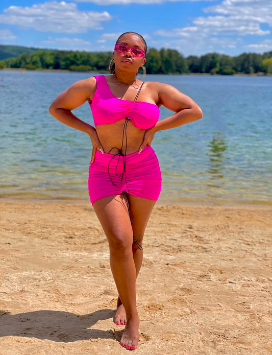 "Girl Next Door" Set - Pink 2-piece Drawstring Crop Top and Skirt Set