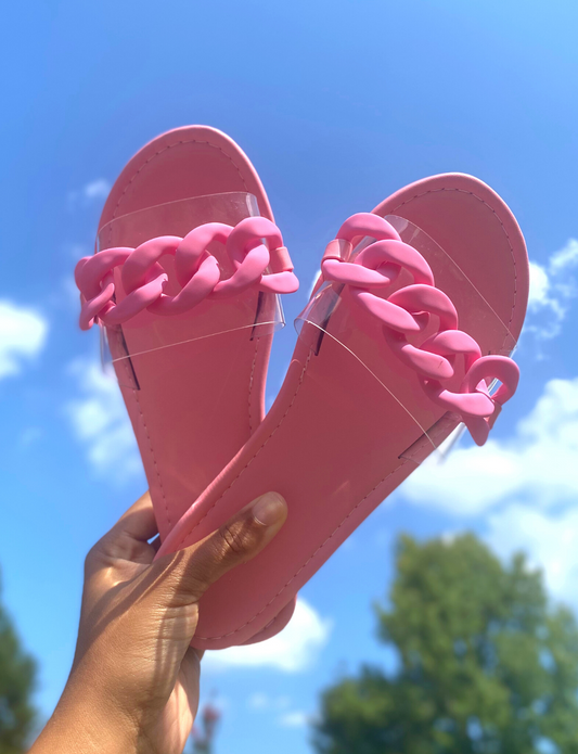 "Naomi" Slides - Pink Chain Sandals With Clear Strap